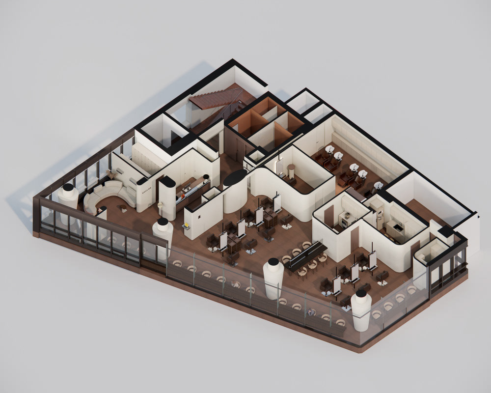 모어온헤어는 ‘Details and Silhouette’이라는 슬로건 아래 현대적이고 세련된 헤어 디자인을 제공하는 브랜드로, 이번 도산공원점은 모어온헤어의 브랜드 아이덴티티를 청담동 상권의 고급스러운 이미지와 어떻게 접목할 것인가에 중점을 두고 설계하였습니다.